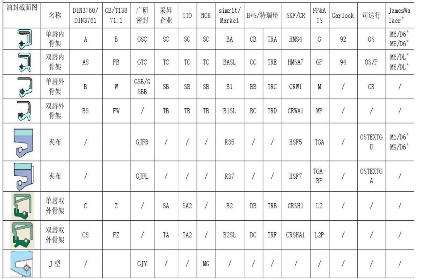恩福油封與其它油封對照表