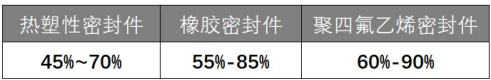 目前常用的評價粗糙度對密封影響好壞的方法是:以5%材料占比對應(yīng)點位置處的水平線為參考零線,往下取在25%的Rz值位置處對應(yīng)的測量材料占比值,依據(jù)不同的密封件材料,Rmr的值應(yīng)在45%-90%之間最為合理,具體見下表。