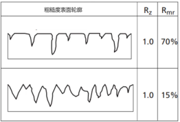 上面那個Rmr=70%,下面那個只有15%,在粗粗度值相同的情況下,70%的Rmr能夠提供更好的密封性。一方面它表面沒有太多溝槽,減少了對密封表面的磨損和可能的泄露路徑;另一方面它還具有一些理想的凹穴深度,能夠以足夠小的體積保留潤滑,可在密封件和配合表面之間提供潤滑膜,從而減少摩擦和密封件磨損。